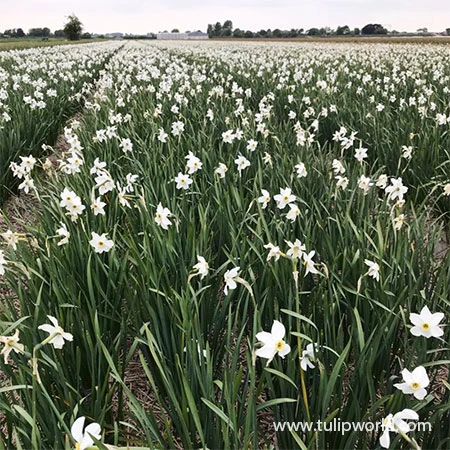 Narcissus species Actaea Recurvus is often called the pheasant’s eye or Poeticus narcissus. A stunning flower: white with a small yellow eye, edged with a deep-red margin. Excellent for naturalizing. For the real aficionado.