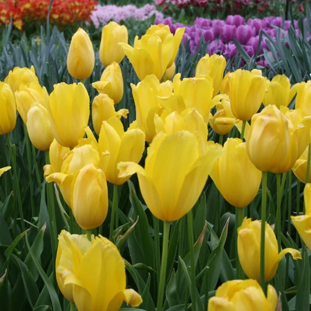 Big Smile Single Late Tulip will put a very big smile in your spring garden with it’s tall, glowing yellow blooms! Single late or Mayflowering tulips are some of the tallest tulips and oval egg shaped flowers are the last to bloom. They are good cut flowers, and for beds and borders