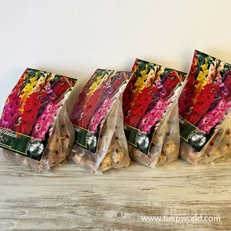 Stock up on bulk gladiolus in this ultra mix of colors! A super limited-time offer on over 100 gladiolus bulbs. Wholesale prices for gladiolus are available to all customers with this ultra pack. The mix will contain at least 3-5+ different colors of gladiolus from purple, red, white, yellow, pink, orange and even bi-color blooms.Â