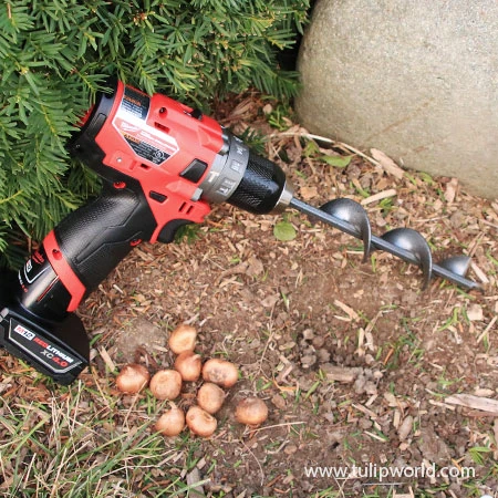 Bulb HEX Shaft Drill Planter does all the work. Dig your holes up to 9