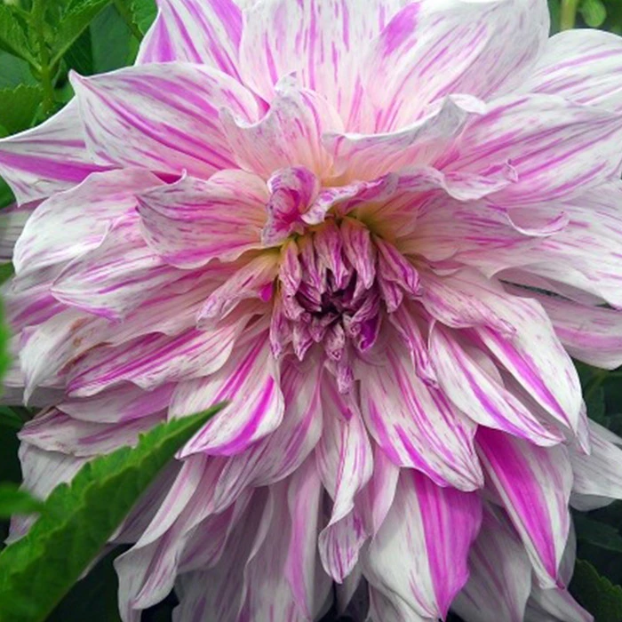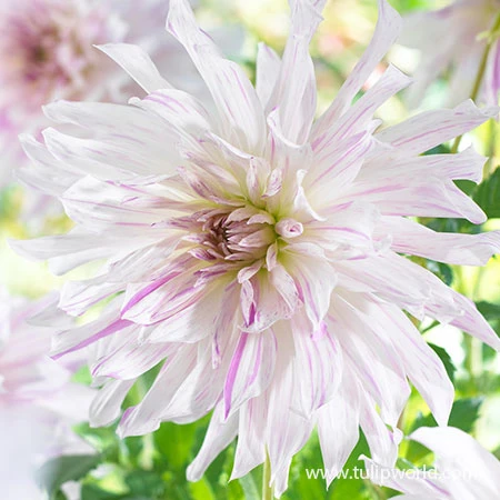 Mom’s Special Dahlia is a dinnerplate dahlias with delicate white blooms that have highlights if violet in them. The large blooms featured slightly twisted petals and will sure to become Mom’s Special Dahlia in her garden this year.
