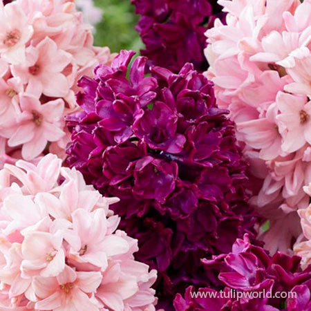 Pinkalicious is the perfect way to describe the pretty Pink Passion Hyacinth Mix! Each mix will contain 3 Apricot Passion Hyacinth and 3 Woodstock Hyacinth. The bright violet color of the Woodstock contrasts superbly with the pale apricot pink of the Apricot Passion! Both varieties will reach up to 12″ tall and will bloom in mid-Spring. As with all Hyacinth, this mix is very fragrant making these perfect for cutting and bringing the sights and scents of Spring indoors!
