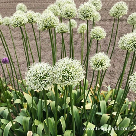 Large purple and white blooms are whimsical and wonderful. Our Purple & White Allium collection is a great way to start gardening with allium bulbs. These flowering onions add texture and shape to your garden with their large purple and white ball shaped blooms. Allium prefer to be planted in full sun in soil that drains well, and do not tolerate wet soils. Plant the purple and white allium collection in the back of the border, or mixed in with your perennial beds.