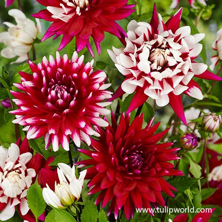 Rebecca’s World is an ever changing one! Blooms in this decorative dahlia can range from solid raspberry red, to bi-color white & red all coming from the same plant. Dahlias bloom mid-Summer until your first hard frost of the year. Don’t miss out on having this unique one of a kind dahlia in your garden this year.