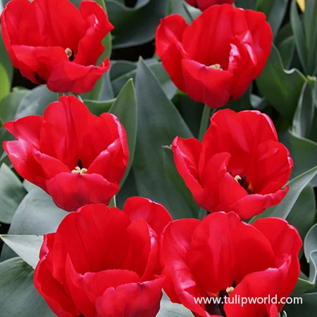 Seadov Triumph Tulips are a short growing variety that bloom mid Spring. The bright red blooms are showy, and make an excellent border plant. Plant with other warm colors such as orange, and yellow for a warm and bright color combination.