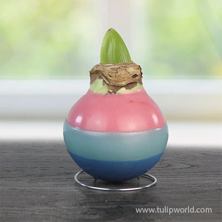 The Striped Pearl Wax Amaryllis looks just like an Easter egg! This colorful Waxed Amaryllis will grow without water or soil in a bright, warm location indoors! Perfect to brighten a loved ones Spring or as a fun addition to any Easter basket this season!