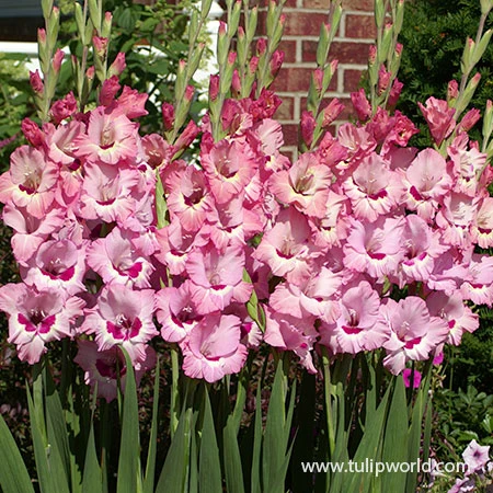That’s Love Gladiolus is sure to add beauty to your garden with the pale pink blooms with ruby red heart centers. Gladiolus are a well known summer blooming plant that is the perfect addition to any garden bed or as a stand alone planting. That’s Love Gladiolus are ideal for use in cut flower arrangements.
